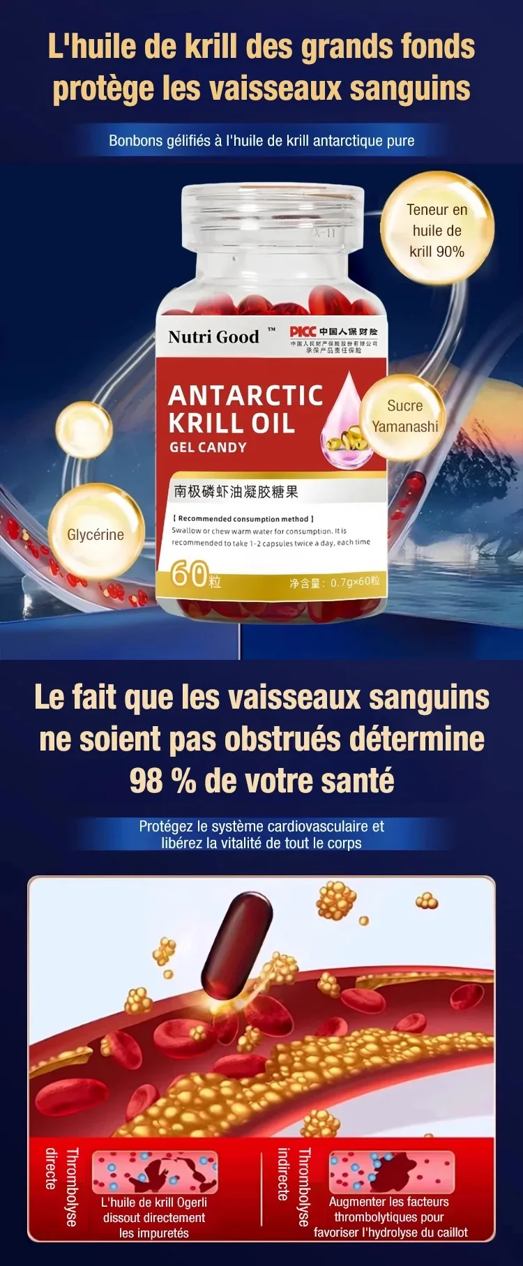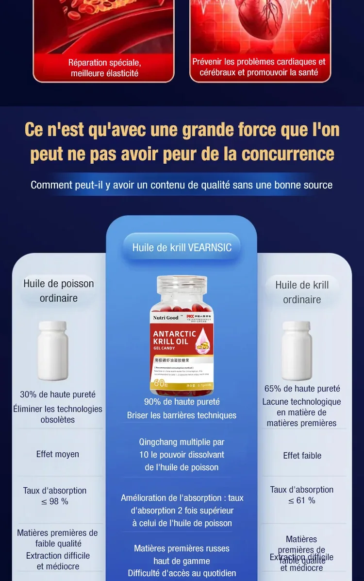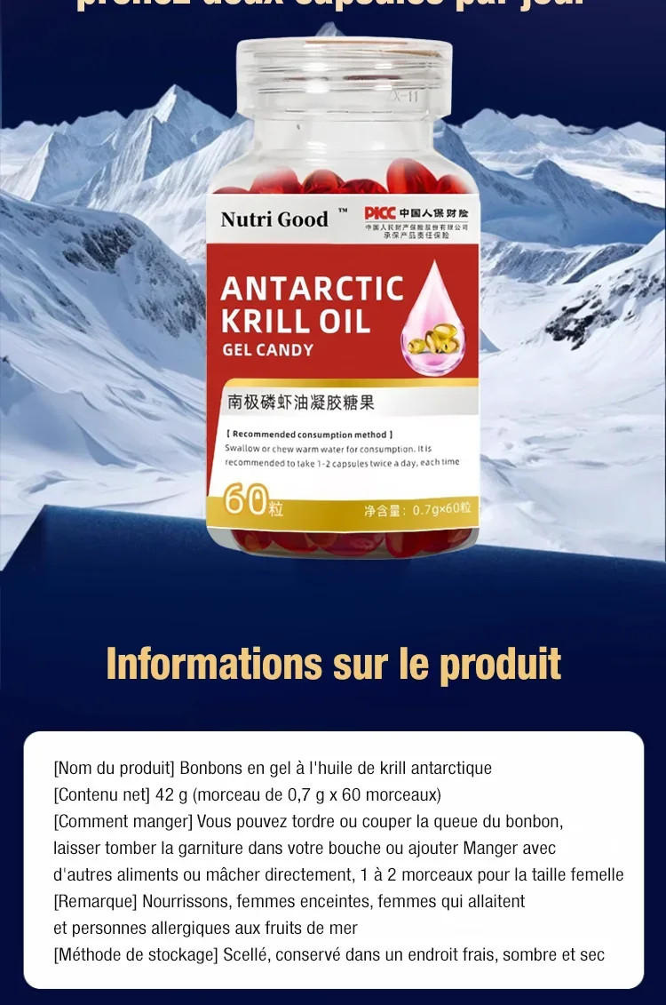 Bonbons gélifiés à l'huile de krill antarctique 100 % pure et de qualité supérieure